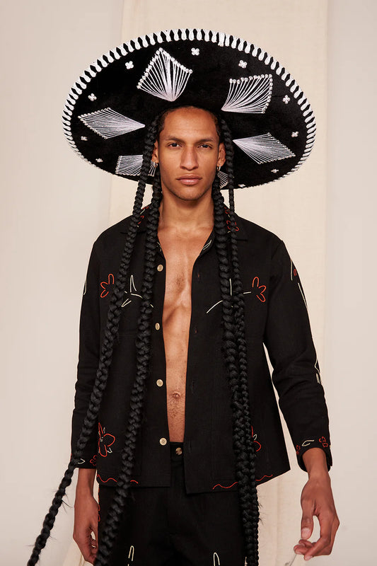 Como es tradición una sinergía colaborativa empezó a gestarse. Matthew creo esta colección ecléctica y con aires de mariachi inspirada en María Sabina nuestra curandera y chamana más representativa. Con el lanzamiento de esta serie celebramos nuestro quinto aniversario como marca, encomendándonos a los buenos augurios.