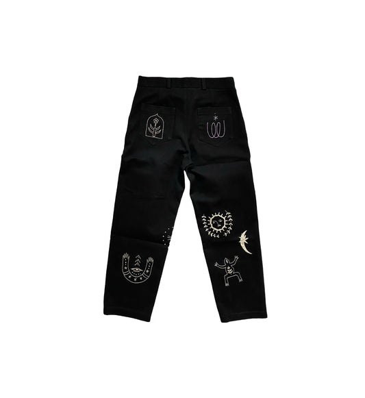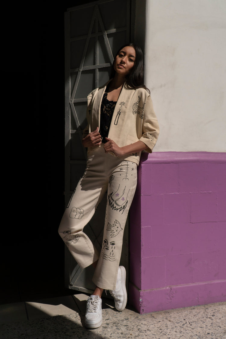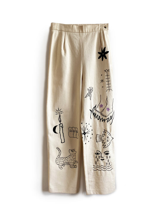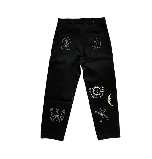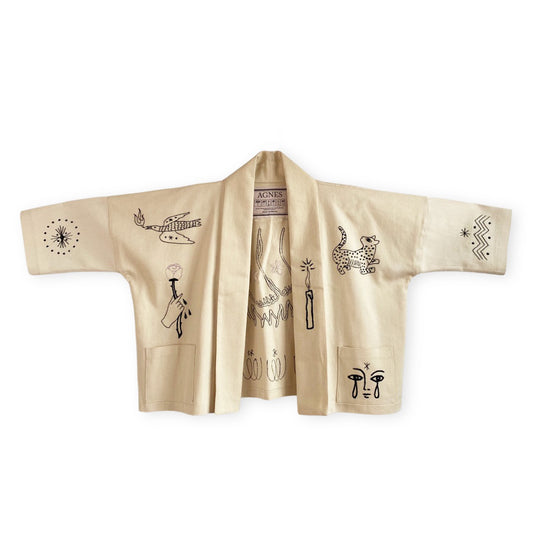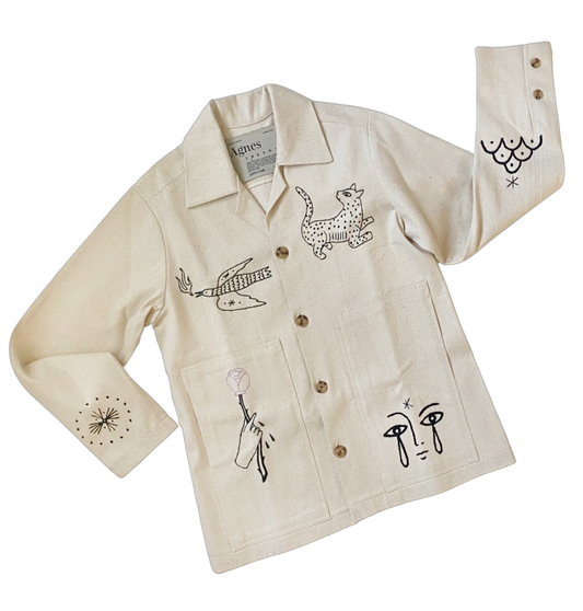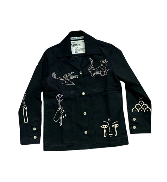 The beautiful and magical illustrations in this edition are by Christian Castañeda @xianofthedeath , an artist and cat whisperer. She was inspired by Agnes Waterhouse, the woman we honor with our brand name. She was a healer, botanist, and the first woman accused of witchcraft. These impeccable embroideries, made by the women of Temoaya in collaboration with @jaujabordados , are a tribute to her work.
