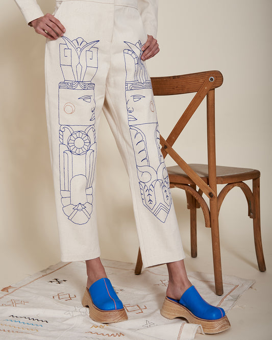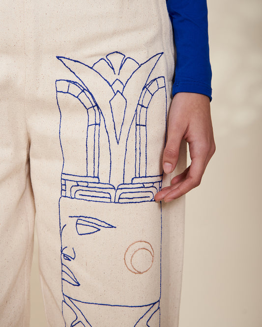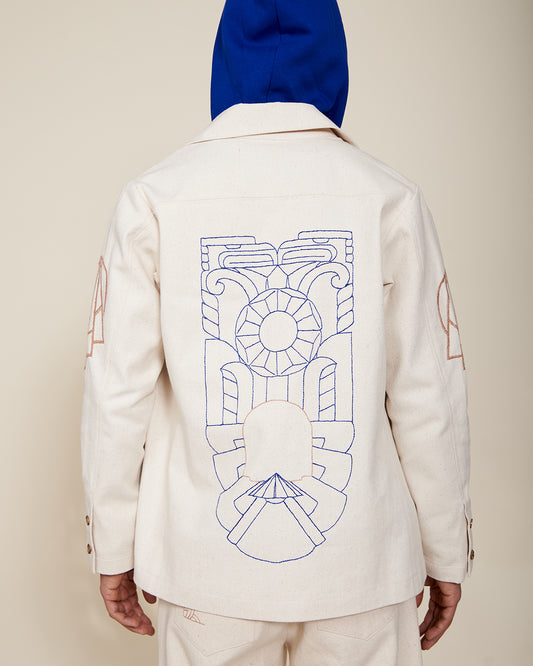 At 62 Humboldt Street in downtown Mexico City, stands the YWCA (Young Women's Christian Association) building. On its exterior walls, you can see art deco reliefs, inspired by Mexico or neo-pre-Hispanic art, by sculptor JL Cordero, details we explore in our new embroidered edition. The dahlias, agaves, the aesthetic fusion, and the fact that the space was conceived as a refuge or women's home—with guardian beings guarding the main entrance—were an inspiring nod for "Guerreras Águila."