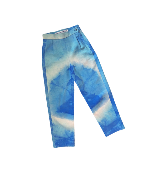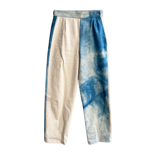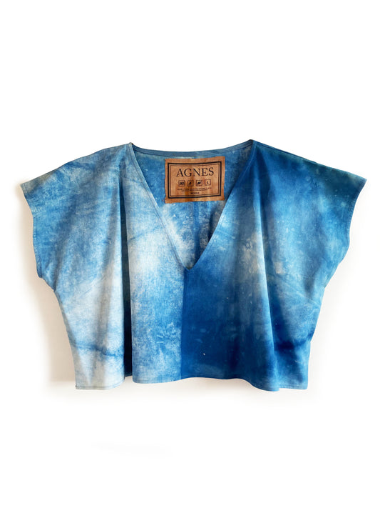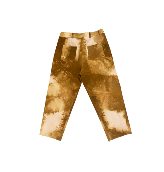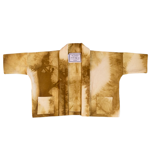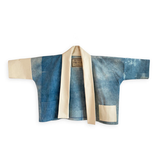There's beauty in discovering the shades that can be achieved with different fibers and the same dye. This series was dyed using the shibori technique with seasonal dyes such as cascalote, rubia, pericón, gualda, and organic indigo on raw cotton and silk fibers woven into denim and velvet.