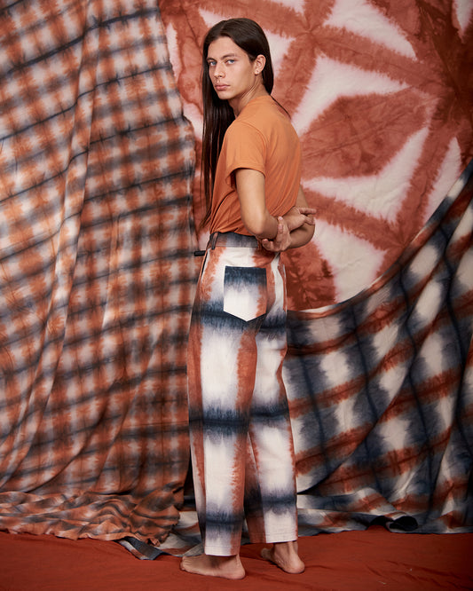 The new dye design we developed for the latest Series No. 10 is a handcrafted and very much our take on Scottish tartan, experimenting with new folds and adding a green made with blue and indigo to the color palette. Although we don't create seasonal collections, we did want to celebrate the arrival of our favorite season. Welcome Autumn!
