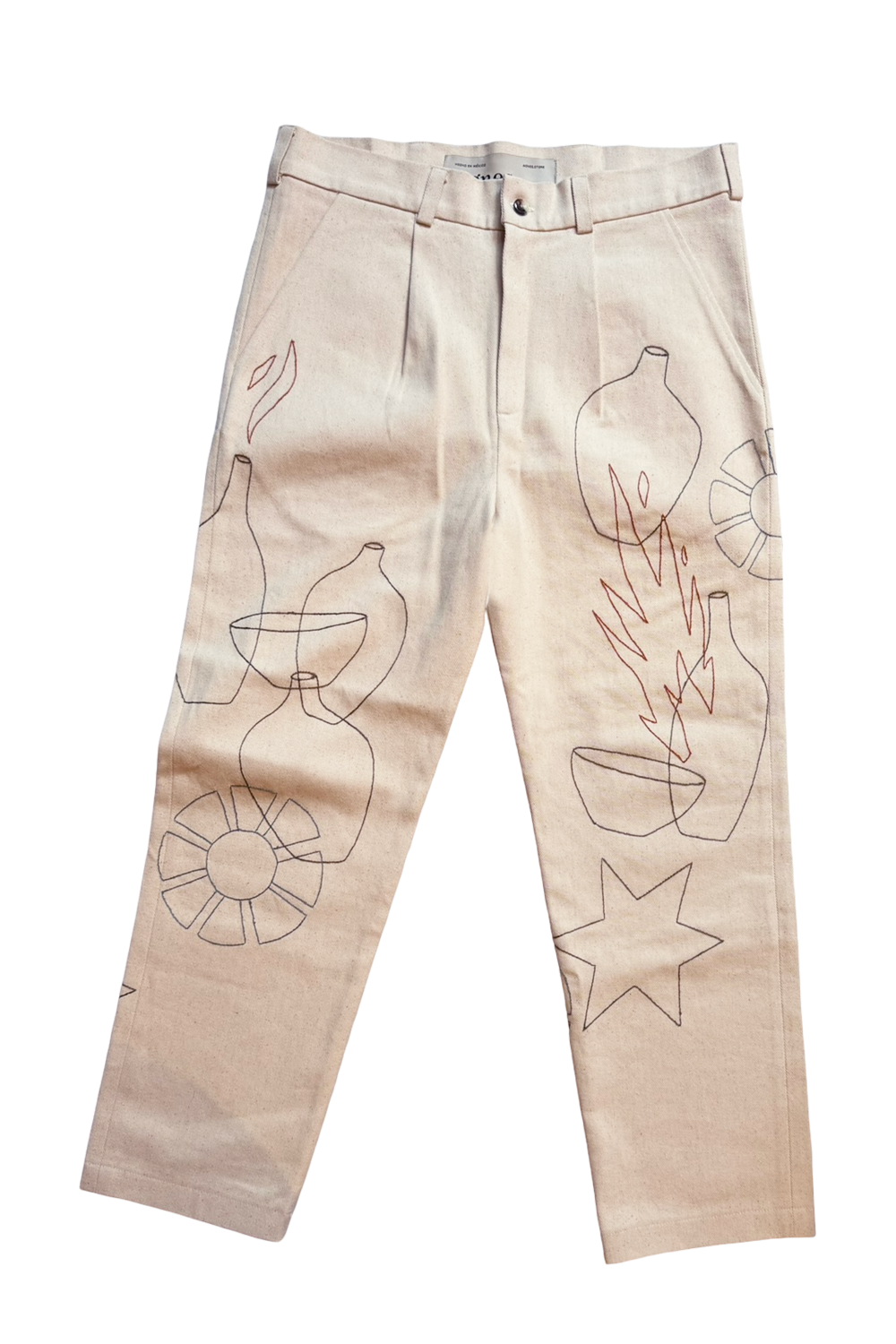 Slack high-waisted con cierre frontal y bolsillos traseros confeccionado en mezclilla cruda 100% algodón.